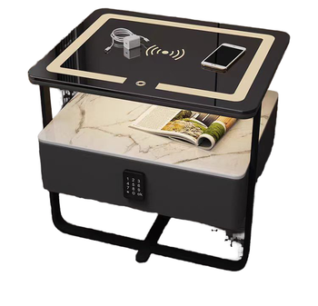 Modern LED Nightstand Bedside Table com Fechamento de Impressão Digital e Carregamento USB Sem Fio Smart Leather Bedside Table para Quarto